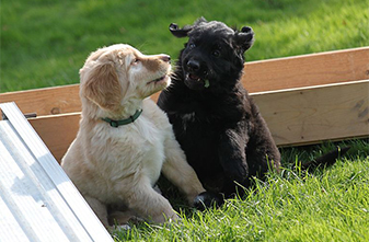 Alle Spielgeräte werden ausgiebig benutzt und auch die Hosenbeine, die Schuhe und Ärmel der Welpenbesucher werden gerne für kleine und große Zerrspiele zweckentfremdet.