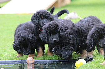 Es sind vier Hündinnen schwarzmarken und ein Rüde schwarz.